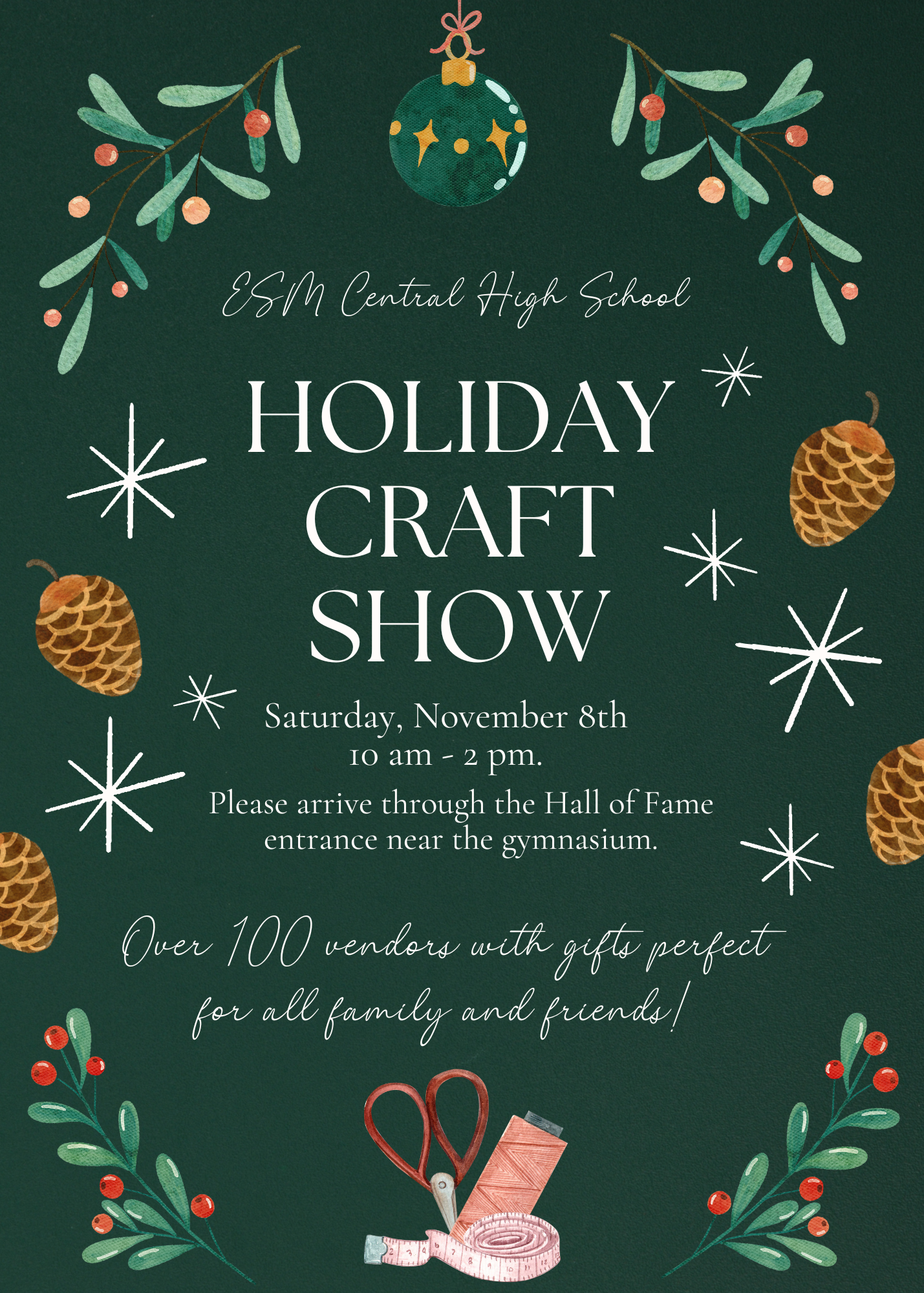 The East Syracuse Minoa Band Program will hold its annual ESM Holiday Craft and Vendor Show on Saturday, November 8 from 10 a.m. to 2 p.m. at ESM Central High School, 6400 Fremont Rd., East Syracuse. The event will feature about 100 booths. The ESM Cosmetology Club will offer concessions. Proceeds will support music programs at CHS. Booth spaces are sold out as of October 27.